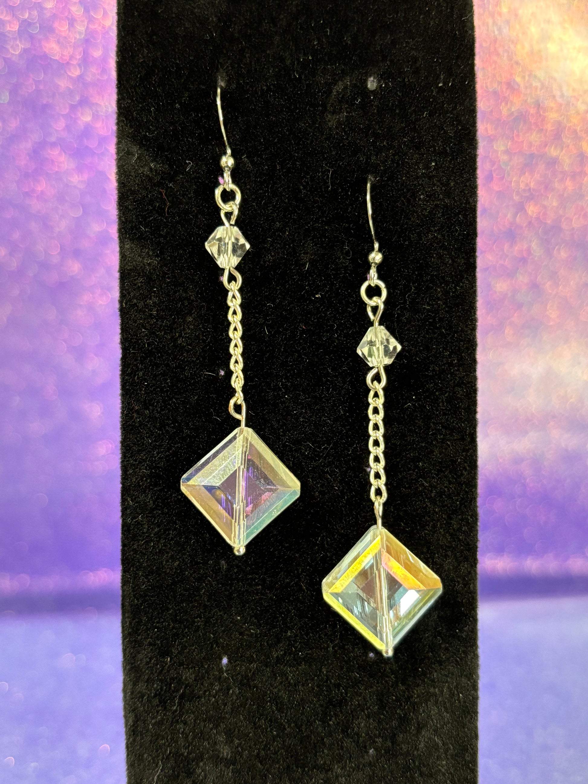 Beautiful clear crystal glass dangle earrings