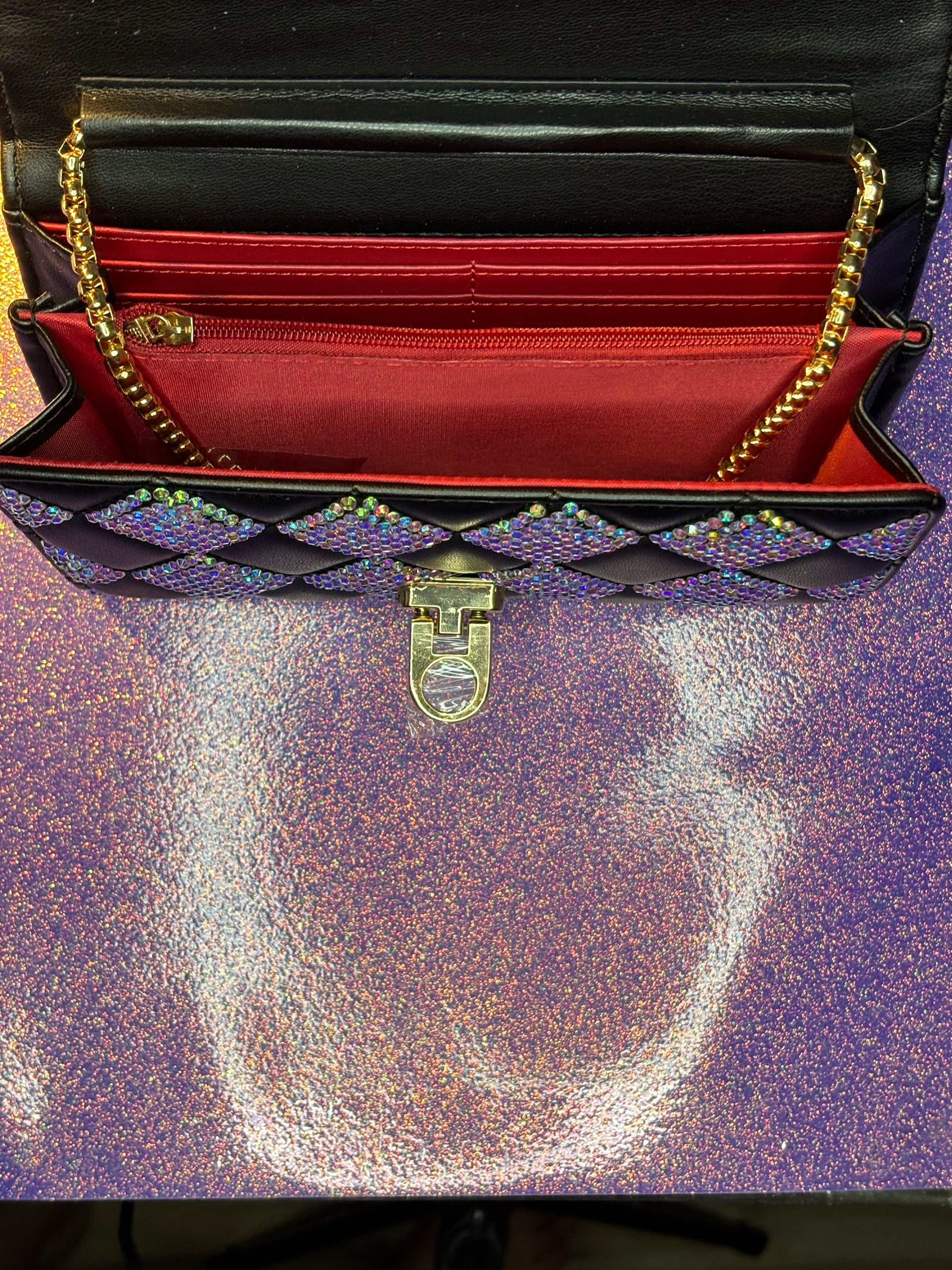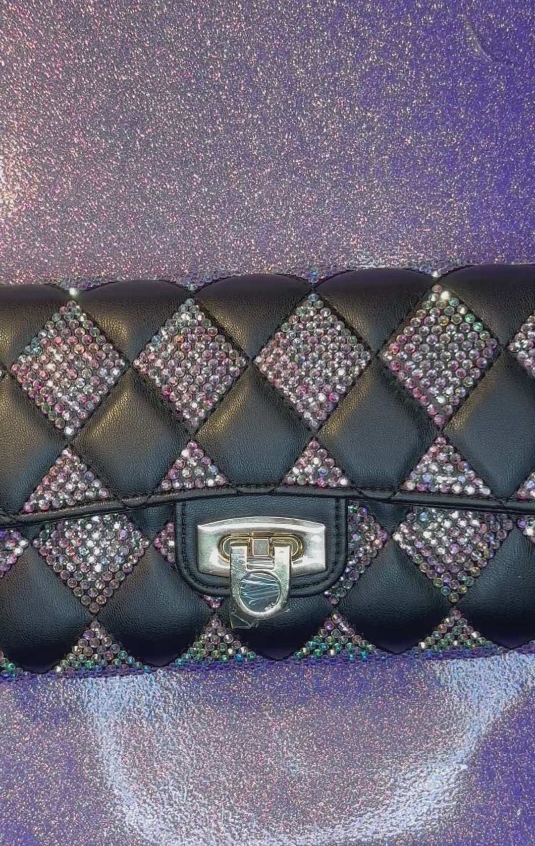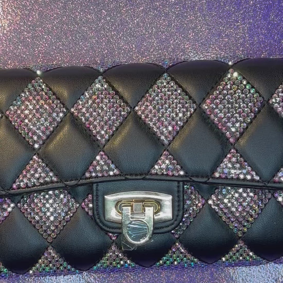 Be a show stopper with this beautiful black tufted bag adorned with over 3,000 rhinestones!