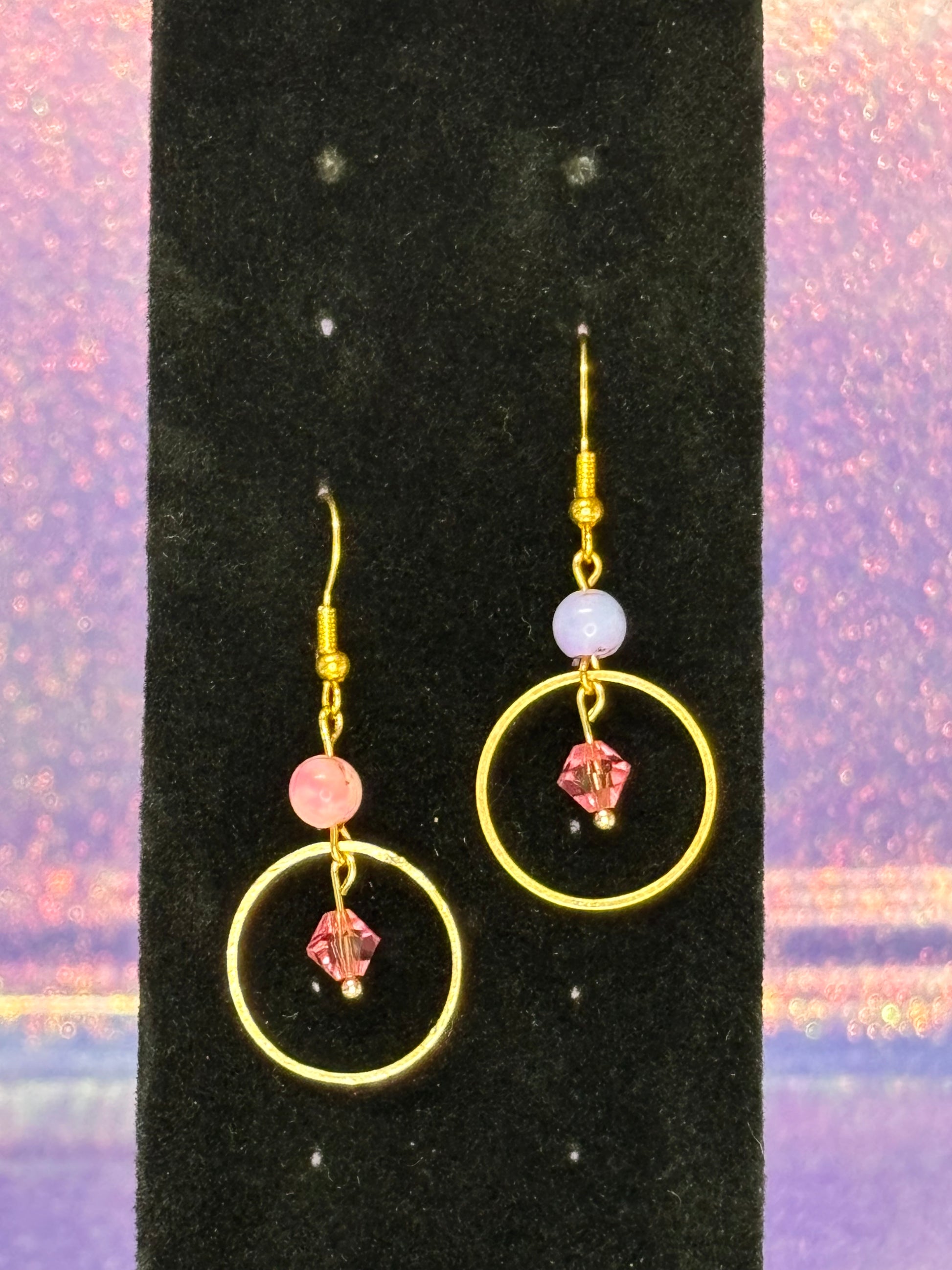 Pink & purple Howlite with pink crystals enclosed in a golden hoop