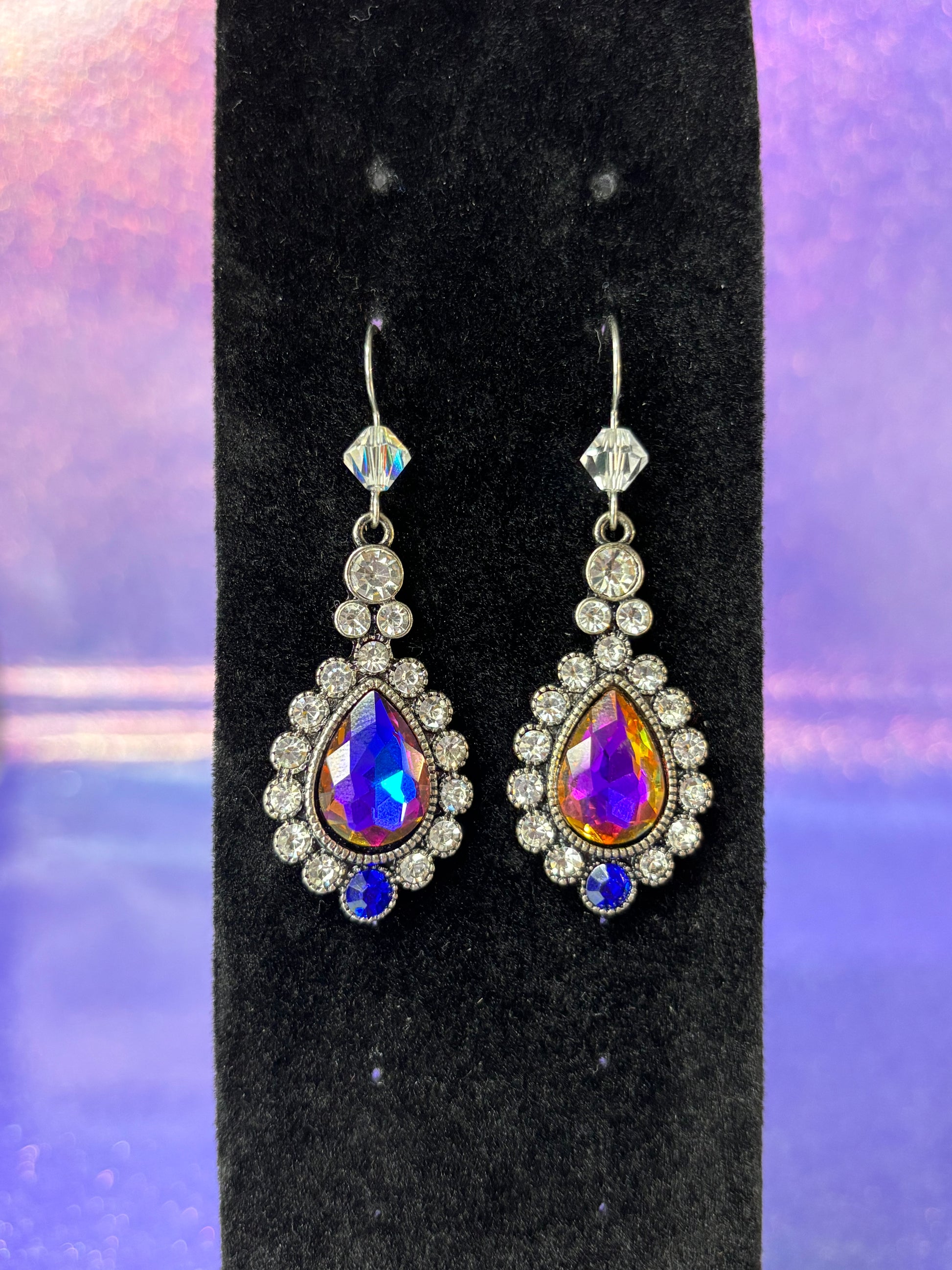 White crystals surrounding a beautiful blue/purple large rhinestone